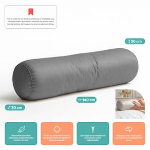 Almofada Travesseiro Bastão Tubo Rolo Dot 140cm Macia Veludo Cinza - Abmaza