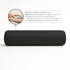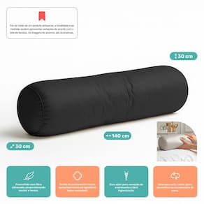 Almofada Travesseiro Bastão Tubo Rolo Dot 140cm Macia Veludo Preto - Desk Design