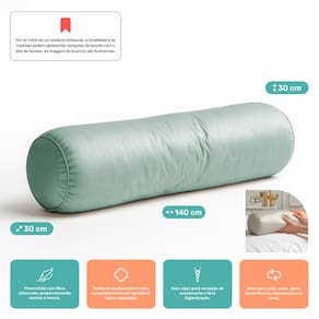 Almofada Travesseiro Bastão Tubo Rolo Dot 140cm Macia Veludo Verde Acqua - Abmaza