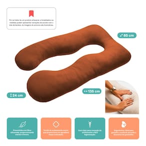 Almofada Travesseiro de Corpo Gestante Relaxante Isa Grande Macia Veludo Terracota - Abmaza - Laranja