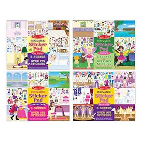 PRODUTO INTERNACIONAL.Descrição do produto Os "adesivos" de vinil reutilizáveis nesta biblioteca de quatro almofadas afixam-se com segurança nas páginas resistentes e, em seguida, descasquem facilmente quando você estiver pronto para fazer uma mudança. Cada bloco de atividade de adesivos inclui mais de 150 adesivos estilo cling, além de cinco páginas de fundo brilhantes e coloridas que são especialmente projetadas para seu tema: cenas de fadas para encher com magia, páginas cheias de modelos amigáveis para se vestir, uma casa aconchegante para mobiliar e encher, e cenários reais para coroações e bolas reais. Juntos, eles fazem uma maneira atraente e agradável para as crianças explorarem o estilo e a narrativa à medida que as habilidades motoras finas crescem! História da marca Por do fabricante, de brinquedos de madeira clássicos a artesanato, brincadeiras e jogos, os produtos Melissa & Doug fornecem uma plataforma de lançamento para inflamar a imaginação e um senso de admiração em todas as crianças para que possam descobrir a si mesmas, suas paixões e seu propósito. Desde a fundação da empresa, há mais de 25 anos, a Melissa & Doug tem consistentemente entregue produtos inovadores que inspiram o pensamento aberto, incentivam as crianças a ver novas possibilidades e oferecem inúmeras maneiras de jogar. É parte de uma visão maior para retomar a infância. Porque ao dar às crianças uma verdadeira infância com espaço e liberdade para explorar seu mundo, damos a elas um caminho para realizar todo o seu potencial!
