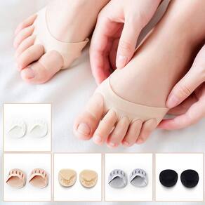 Almofadas de antepé Adaskala Five Toe para homens e mulheres, protetores de meia PlNolla, salto alto, insertos para cuidados com os pés, calos, pacote com 5 pares — feitas de material de algodão e náilon, macias para a pele.