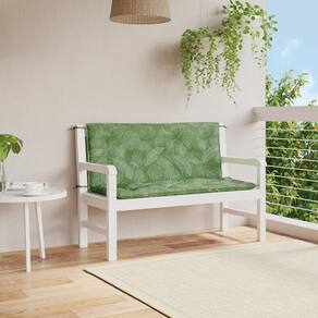 - Material: tecido (100% poliéster) - - Material de enchimento: fibra oca- - Dimensões (cada): 47,2" x 19,7" x 2,8" (C x L x T) - - Comprimento da corda (cada): 11,8"- - Característica do padrão de folha- - Com 4 conjuntos de cordas- - À prova de água- - A entrega contém: - - 1 x almofada de assento- - 1 x almofada traseira - Proposta 65 da Califórnia