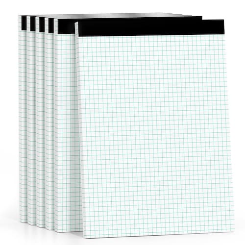 -?CADERNO DE PAPEL MILIMETRADO DE 8,5 x 11 POLEGADAS?O pacote contém 6 cadernos de papel quadriculado (30 folhas cada, 180 no total), tamanho de carta de 8,5" x 11" (excluindo encadernação), oferecendo amplo espaço de trabalho. A grade quadrada de 4x4 polegadas cria uma orientação perfeita para gráficos precisos, esboços arquitetônicos, equações matemáticas e diário com marcadores. Papel milimetrado branco de 70 g/m2 de espessura com impressão em frente e verso, essas folhas resistem a vazamentos e fornecem uma superfície de escrita de alta qualidade para suas anotações e tarefas