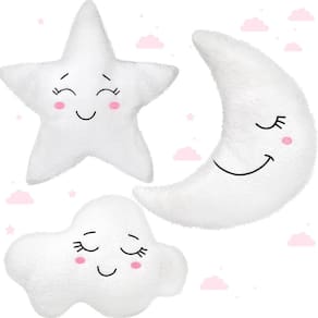 Características: Adotando formas adoráveis, estas lindas almofadas podem ser consideradas como presentes delicados para amigos, colegas de classe, colegas, familiares e muito mais, elas ficarão felizes em receber presentes tão doces. Com expressões realistas e vibrantes, estas almofadas decorativas de pelúcia trarão um clima encantador, você pode decorá-las para seus quartos, sofás, salas de estar, padarias, escritórios, carros e assim por diante. Especificações: Material: tecido macio e algodão PP Cor: como mostrado nas imagens. Tamanho: como mostrado nas imagens. A embalagem inclui: 3 x almofadas decorativas fofas. Observações: Medição manual, permita pequenos erros no tamanho. A cor pode existir uma ligeira diferença devido a diferentes telas. - Forma adorável: você receberá 3 peças de lindas almofadas de pelúcia em vários designs, como lua, nuvem e estrela, que podem ser aplicadas como travesseiro, travesseiro virado para baixo, travesseiro de cintura, etc., atendendo às suas diferentes demandas - Material de qualidade: o travesseiro de berçário é feito de tecido macio e preenchido com algodão PP confiável, o que torna o travesseiro cheio de forma, fofo e macio, bonito e prático, confortável e amigo da pele, não desbota facilmente, acompanhará você por um longo tempo - Tamanho confortável: os travesseiros estão em tamanhos adequados, ideais para sua vida diária e se encaixam na maioria dos cantos da sua casa; Deve-se notar que seu volume é comprimido durante o transporte e pode ser restaurado ao seu estado fofo tocando suavemente no travesseiro após o recebimento - Desenhos requintados: estas almofadas fofas e fofas são requintadamente projetadas, com expressões realistas e vibrantes, trazem um toque confortável, a forma dos desenhos animados permite que você esteja sempre cheio de energia positiva - Amplas aplicações: o adorável travesseiro de pelúcia é adequado para decorar quartos, sofás, salas de estar, padarias, escritórios, carros, infanette e mais; É uma coisinha quente para acompanhar você para dormir quando você está cansado e confortá-lo quando você está deprimido