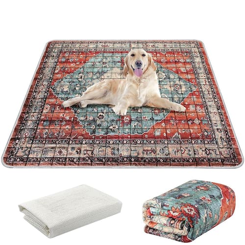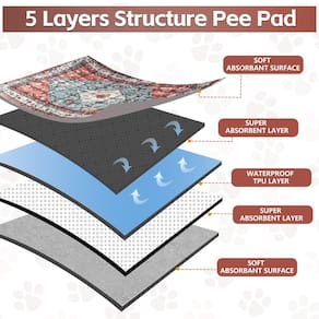 - ?????? ? ?-? ????? Atualizado com tapete de PVC antiderrapante na parte inferior, este tapete permanece firmemente no chão ou na caixa, garantindo a segurança do seu cão. As almofadas reutilizáveis para filhotes não apenas protegem contra arranhões e sujeira, mas também apresentam designs elegantes e boêmios que adicionam um toque decorativo à sua casa.
