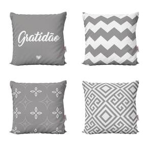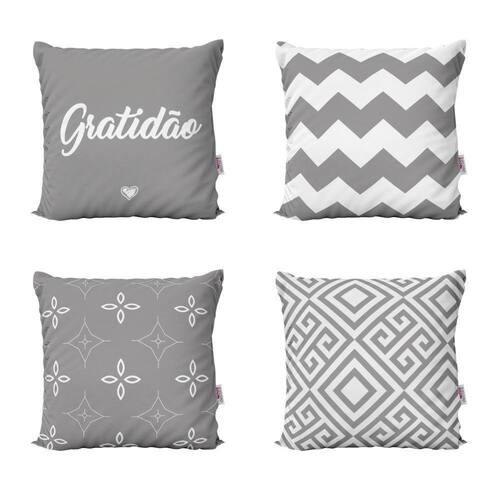 Almofadas Geometricas Cinza Gratidão Para Quarto 40X40Decorar sua casa com lindas Almofadas é aliar conforto e personalidade.E não existe sensação melhor do que poder chegar em casa depois de um dia cansativo de trabalho e curtir o aconchego do nosso lar.E por falar em aconchego, um item que transmite muito bem isso são as Almofadas Decorativas que você encontra na Novadecora.Se você é daqueles que adora decoração e gosta de deixar a sua casa com a sua personalidade, aqui na Novadecora é o lugar ideal para encontrar as almofadas mais lindas, dos mais variados estilos.Kit Com 4 Almofadas Decorativas em impressão digital com estampa exclusiva frente e versoTecidoCapa confeccionada em tecido oxford 100% poliéster, um tecido de ótima qualidade e durabilidade. O oxford proporciona mais conforto e um toque agradável, além das cores ficarem mais vivas deixando seu ambiente mais decorado.Características e especificações:Marca: novadecoraTecido: oxfordAlmofada já cheia pronta para usoFibra siliconizada anti-alérgica e anti-ácaro com forro em tntAlmofada lavável - sem perder a qualidade e impressãoZíper invisívelDimensões lxa 40x40 cmConteúdo da embalagem 4 almofadas com enchimentos - AmareloImportante sobre lavagem:- Lavar manualmente com sabão neutro- Temperatura máxima de lavagem 40°C. - Não usar alvejante. - Secar a sombra.- Temperatura máxima de base do ferro 110°C. - Não limpar a seco.Garantia:Três meses contra defeitos de fabricação.As cores das estampas podem variar de acordo com a calibração do seu monitor.AVISO: Não nos responsabilizaremos pela diferença de cores em caso de pedidos feitos separadamente, no caso produzidos em lotes diferentes.Agradecemos a visita e boas compras Marca: Novadecora