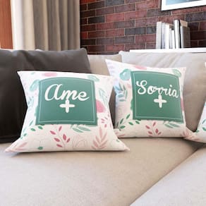 Almofadas Personalizadas Ame, Sorria, Sonhe, Viva Para Sofá 40x40 - Novadecora Decorar sua casa com lindas Almofadas é aliar conforto e personalidade. E não existe sensação melhor do que poder chegar em casa depois de um dia cansativo de trabalho e curtir o aconchego do nosso lar. E por falar em aconchego, um item que transmite muito bem isso são as Almofadas Decorativas que você encontra na Novadecora. Se você é daqueles que adora decoração e gosta de deixar a sua casa com a sua personalidade, aqui na Novadecora é o lugar ideal para encontrar as almofadas mais lindas, dos mais variados estilos. Kit Com 4 Almofadas Decorativas em impressão digital com estampa exclusiva frente e verso TECIDO Capa confeccionada em tecido Oxford 100% poliéster, um tecido de ótima qualidade e durabilidade. O Oxford proporciona mais conforto e um toque agradável, além das cores ficarem mais vivas deixando seu ambiente mais decorado. Características e especificações: Marca: Novadecora Almofada já cheia Pronta para uso Almofada lavável - sem perder a qualidade e impressão Zíper invisível Dimensões lxa 40x40 cm É produto personalizado: Sim Conteúdo da embalagem 4 almofadas com enchimentos Importante sobre lavagem: - Lavar manualmente com sabão neutro - Temperatura máxima de lavagem 40°C. - Não usar alvejante. - Secar a sombra. - Temperatura máxima de base do ferro 110°C. - Não limpar a seco. Garantia: Três meses contra defeitos de fabricação. As cores das estampas podem variar de acordo com a calibração do seu monitor. AVISO: Não nos responsabilizaremos pela diferença de cores em caso de pedidos feitos separadamente, no caso produzidos em lotes diferentes. Marca: Novadecora