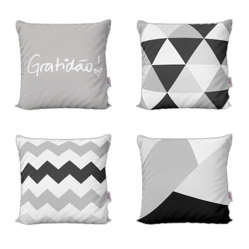 Almofadas Decorativas Preto e Branco Geométricas Gratidão Para Sofá 40x40 - Novadecora Decorar sua casa com lindas Almofadas é aliar conforto e personalidade. E não existe sensação melhor do que poder chegar em casa depois de um dia cansativo de trabalho e curtir o aconchego do nosso lar. E por falar em aconchego, um item que transmite muito bem isso são as Almofadas Decorativas que você encontra na Novadecora. Se você é daqueles que adora decoração e gosta de deixar a sua casa com a sua personalidade, aqui na Novadecora é o lugar ideal para encontrar as almofadas mais lindas, dos mais variados estilos. Kit Com 4 Almofadas Decorativas em impressão digital com estampa exclusiva frente e verso TECIDO Capa confeccionada em tecido Oxford 100% poliéster, um tecido de ótima qualidade e durabilidade. O Oxford proporciona mais conforto e um toque agradável, além das cores ficarem mais vivas deixando seu ambiente mais decorado. Características e especificações: Marca: Novadecora Almofada já cheia Pronta para uso Almofada lavável - sem perder a qualidade e impressão Zíper invisível Dimensões lxa 40x40 cm É produto personalizado: Sim Conteúdo da embalagem 4 almofadas com enchimentos Importante sobre lavagem: - Lavar manualmente com sabão neutro - Temperatura máxima de lavagem 40°C. - Não usar alvejante. - Secar a sombra. - Temperatura máxima de base do ferro 110°C. - Não limpar a seco. : Três meses contra defeitos de fabricação. As cores das estampas podem variar de acordo com a calibração do seu monitor. AVISO: Não nos responsabilizaremos pela diferença de cores em caso de pedidos feitos separadamente, no caso produzidos em lotes diferentes.
