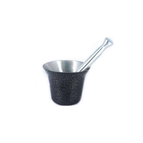 Almofariz Alumínio Polido Craqueado Socador de Alho Médio Preto