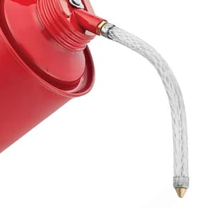 É composta por um corpo metálico (região por onde se é armazenada os líquidos) e com um bico em sua extremidade (região por onde o óleo é guiado e saído do recipiente). O bico é essencial para manusear a direção da substância, evitando erros e desperdícios durante o processo.