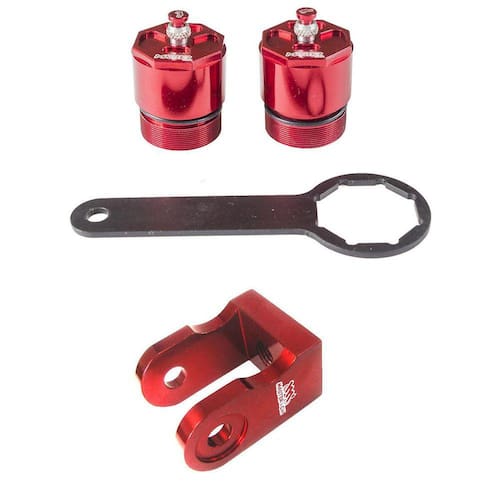 Fabricando em Alumínio de alta qualidade, com banho de anodização para melhor acabamento e beleza, é desenvolvido para atender aos pilotos com maior estatura. Possui 20mm de altura, com isso não deixa e bengala torcer com 30mm fica inteiro na mesa, podendo causar torções na suspensão , nesse caso obtendo melhor performance para o piloto. Possui válvula de alívio para a extração do ar comprimido causado pela suspensão, assim conseguindo desempenho e o 100% do funcionamento da suspensão.
