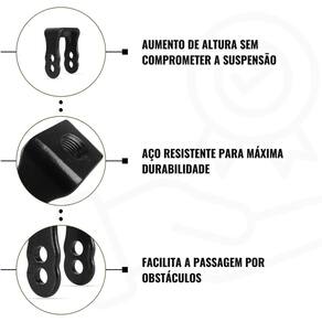 Com um aumento de 35mm na suspensão traseira, o alongador permite uma pilotagem mais estável, minimizando impactos e proporcionando maior controle nos obstáculos.
