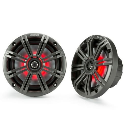Par de Alto Falante Kicker - 6,5 polegadas Nossos alto-falantes são feitos para prosperar na água. Tratamentos UV em cones moldados por injeção, cercas Santoprene ®, cestas e grades todos ajudam a manter o desempenho de prateleira superior. Os alto-falantes KM suportarão quase todas as condições climáticas com motores vedados resistentes a respingos e borrifos, cones e tampas de bloqueio / terminais selados. O hardware do alto-falante é forjado a partir de aço inoxidável 316L à prova de ferrugem.