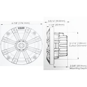 Especificações técnicas: Cor: Preto Bobina de voz de 4 ohms Energia de pico 195W (watts, por ANSI / CTA-2031-A) Potência do amplificador recomendada 65W (watts RMS) Frequência Responsiva 35-21k (Hz) Diâmetro do furo de montagem (5,1 pol ou 12,8 CM) Profundidade de montagem (2,3/ 8 pol ou 5,99 CM) Tweeter de titânio de 3/4 de polegada Woofer de Polipropileno Tratado de UV Com Santoprene® Surround Cesto de Polímero Resistente a UV Tampa de bloqueio / selada Estrutura do Motor Selado Hardware de montagem em aço inox 316L incluído Grades Carvão e Brancas Incluídas Atende ou excede as normas ASTM para UV ** e exposição ao sal / névoa *** * ASTM B117 200 horas Teste de névoa de sal ** ASTM G154 400 h. Teste UV Acelerado Este alto-falante coaxial de 6,5 polegadas funciona melhor com 65 watts de potência recomendada.