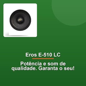 O Eros E-510 LC também se destaca pela sua engenharia avançada. Com características como frequência de ressonância de 77.6 Hz, volume equivalente de 18.9 L e parâmetros de qualidade acústica otimizados (Qms, Qes e Qts), ele é projetado para oferecer excelente desempenho em diferentes aplicações. Sua massa total de 44.063 g e área de cone de 0,037 m contribuem para uma resposta sonora precisa e impactante, atendendo às expectativas dos mais exigentes amantes do áudio.