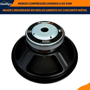 Woofer Atrack de 15 Pol suporta até 1100 WATTS RMS de potência em programa musical, perfeito para quem quer reproduzir um grave que faz tremer as estruturas onde quer que passe. Este super projeto possui: aranha em polycotton, cone de celulose, bobina em kapton com fio CCAW, conjunto magnético com ferrite de bário, e carcaça em aço de alta resistência.