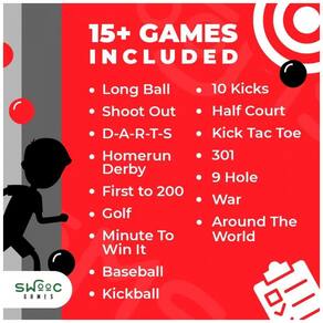 MAIS DE 15 JOGOS autênticos A diversão nunca para com nossos jogos autênticos EXCLUSIVOS. Escolha entre Long Ball, Shoot Out, D A R T S, Home Run Derby, Kick Ball, Golf, War, Kick Tac Toe e outros. Em todo o mundo, só para citar alguns.