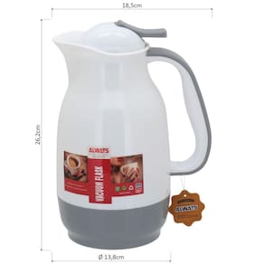 Alwa Garrafa Térmica 26x18x13cm 1l Plástico Cinza Ampola Vidro Essa garrafa térmica está na moda. Ela é fabricada com materiais resistentes e duráveis: plástico e ampola de vidro. Possui um design que contribui com a decoração da mesa, é bastante funcional e conserva a temperatura ideal das bebidas quentes ou frias por até 24 horas.