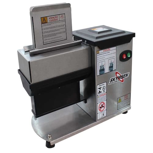 Amaciador de Carne Inox ABS Skymsen. Ideal para açougues, cozinhas industriais e supermercados, o amaciador de carne elétrico da Skymsen é produzido em Aço Inox, tendo os rolos acoplados em sua tampa, podendo ser removidos na hora da limpeza, o que facilita o processo de higienização do equipamento. Além dessas vantagens, para trazer ainda mais versatilidade ao seu estabelecimento. Carnes macias e saborosas fazem toda a diferença na hora de preparar uma boa refeição. É exatamente isso que os consumidores procuram na hora de escolher a carne para comprar. Para atender essa demanda, contar com o amaciador de bife elétrico da Skymsen fará toda a diferença para garantir a satisfação de seus clientes. O amaciador de carne elétrico da Skymsen funciona através de um rolo com lâminas que atravessam a carne e quebram suas fibras, deixando-a mais fina e fácil de consumir. Além disso, os furos realizados pela máquina, faz com que a carne absorva com maior facilidade os temperos, contribuindo para o seu melhor sabor. Seu uso é recomendado para todos os tipos de carne de gado sem ossos. POTÊNCIA NOMINAL(127V): 550W. POTÊNCIA DO MOTOR(127V): 0,5CV. CONSUMO(127V): 0,55 kW/h. PRODUÇÃO APROXIMADA: 500 kg/h. ESPESSURA MÁXIMA DE CORTE: 2cm. LARGURA MÁXIMA DE CORTE: 17cm. PESO: 29,50 kg. DIMENSÕES(CxAxL): 56x51x34cm. Amaciador de Carne Inox ABS Skymsen é na Atau.