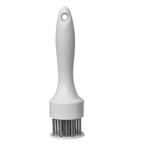 O Amaciador de Carne Profissional Manual com furador é perfeito para amaciar carnes de maneira fácil e rápida, com o mínimo esforço. Com seu sistema diferenciado composto por pequenos pinos em aço inox, ele quebra as fibras da carne dura, amaciando-as sem prejudicar a textura do alimento.