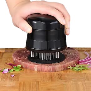 Amaciador de Carnes Batedor de Bife Manual Portátil Cozinha Batedor amaciador, Ideal para amaciar carnes de maneira fácil e rápida, com mínimo de esforço. Este prático amaciador conta com sistema diferenciado composto por pequenos pinos afiados, perfeitos para quebrar as fibras de carnes mais duras facilmente, sem prejudicar a textura do alimento, com seu formato ergonômico,e material de alta qualidade , proporciona conforto e segurança no manuseio. Informações Complementares: - Marca: New Star- Composição: Abs e aço inox; - Cor: Preta- Medidas Aprox: 10 x 7,5- Garantia: 90 dias por defeito de fabricação