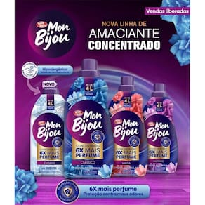 O Amaciante Concentrado Mon Bijou Cuidado - 1L Rende até 4 Litros é ideal para quem deseja roupas macias, bem cuidadas e com um perfume delicado. Sua fórmula foi especialmente desenvolvida para garantir a suavidade dos tecidos, mantendo-os macios por mais tempo, sem perder a durabilidade.