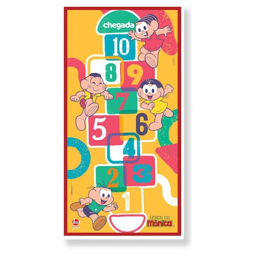 Amarelinha e tapete infantil colorido Turma da Mônica para meninos e meninas com 140cm por 70 cm.