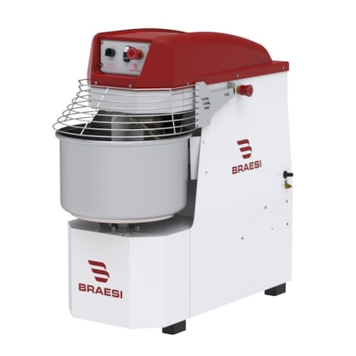 Características Técnicas: Estrutura em aço com acabamento em pintura epóxi Carenagem em polímero termoformado de alta resistência Tacho em aço inox Grade cromada Batedor espiral em ferro com acabamento estanhado Possui grade de segurança que desliga o equipamento ao ser levantada Capacidade de massa pronta: 25kg Potência: 2 CV Capacidade de farinha: 15kg Consumo médio: 2,6 kW/h