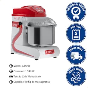 - A Amassadeira Espiral G.Paniz AE10G2 é ideal para panificadoras e pizzarias, com capacidade para até 10 kg de massa pronta.
