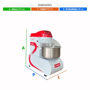 Ela comporta até 60 kg de massa pronta, ideal para produções de médio a grande porte.
