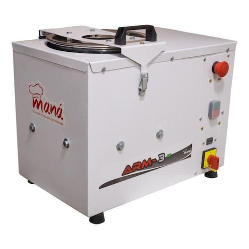 INFORMAÇÕES TÉCNICAS: - Modelo: ARM-3 - Capacidade de massa pronta: 3kg - Potência: 1/2 CV - RPM: 275 - Tensão: 110/220V Bivolt - Corpo em chapa de aço SAE 1020; - Peças em aço, alumínio e ferro fundido; - Acabamento com pintura eletrostática epóxi; - Carenagem em polímero termoformado de alta resistência; - Tacho em aço inox; - Misturador em ferro fundido, revestido com estanho; - Rolamentos blindados; - Rabicho com certificação do INMETRO; Normatizada com NR-12