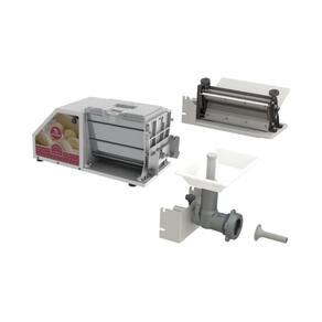 A Amassadeira Semi Rápida 3 kg Kit Completo AELI-310 G2 Braesi é um equipamento multifuncional que reúne em um único produto as funções de amassadeira, extrusora de massas e biscoitos, moedor de carne e cilindro laminador. Ideal para padarias, confeitarias, cozinhas industriais e empreendedores do ramo alimentício, foi projetada para aumentar a produtividade com praticidade, segurança e excelente custo-benefício.Com design robusto e sistema de troca rápida de acessórios, a AELI-310 G2 proporciona alto desempenho na produção de massas frescas e artesanais, como pães, macarrão, espaguete e biscoitos. Conta com tampa de segurança com dispenser, cuba em aço inox e base resistente à umidade, assegurando maior durabilidade e eficiência no .Material de fabricaçãoCarenagem em aço com pintura epóxi brancaTampa em termoplástico transparente com trava de segurançaBase em MDF resistente à umidadeBatedor em nylon injetado de alta resistênciaCuba em aço inoxBocal do extrusor em ferro fundidoSocador e bandeja em nylonCaracterísticas do produtoFunção 4 em 1: amassadeira, extrusora, moedor de carne e cilindro laminadorSistema de troca rápida de acessóriosTampa com trava de segurança e dispenser para ingredientesDesligamento automático ao levantar a tampa e religamento ao abaixarCapacidade para até 2 kg de farinha e 3 kg de massa prontaAlta produção: até 12 kg de macarrão e 10 kg de espaguete por horaDesign moderno e estrutura robustaEspecificaçõesCapacidade máxima de farinha: 2 kgCapacidade mínima de farinha: 1,2 kgCapacidade de massa pronta: 3 kgProdução de macarrão: até 12 kg/hProdução de espaguete: até 10 kg/hConsumo elétrico: 0,26 kWhPás fixasKit extrusora de massas/moedor de carne incluso5 chapinhas para massas e 2 moldes para biscoitosKit cilindro laminador com 28 cm de largura1 bocal em ferro fundido e 1 funil para ensacar linguiçaDimensões e pesoAltura: 28,3 cmLargura: 58,8 cmComprimento: 26,2 cmCom cilindro laminador AxLxP : 283 x 965 x 262 mmCom extrusor AxLxP : 283 x 785 x 357 mmPeso líquido: 21,8 kgGarantiaEste produto conta com de 6 meses, oferecendo mais segurança e tranquilidade para o seu investimento. Em caso de defeitos de fabricação, o suporte técnico garante a reposição ou reparo dentro do prazo estabelecido, assegurando confiabilidade e suporte ao cliente.