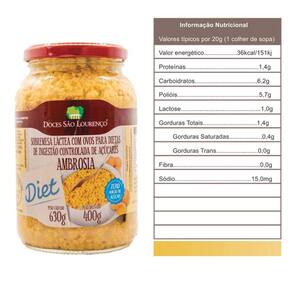 Ambrosia Zero Açucar São Lourenço 380g 3 vidros Ambrosia Zero açúcar é uma variação da sobremesa brasileira tradicional chamada ambrosia, que é preparada sem adição de açúcar. É uma opção mais saudável para pessoas que desejam reduzir o consumo de açúcar em sua dieta, como pessoas com diabetes ou que estão controlando o consumo de carboidratos. A Ambrosia Zero açúcar pode ser feita com ingredientes como leite desnatado, ovos, adoçante artificial e temperos, como canela e cravo. Esses ingredientes são cozidos em fogo baixo até que a mistura adquira uma textura cremosa. Alguns fabricantes também podem adicionar outros ingredientes saudáveis, como fibras ou proteínas, para aumentar o valor nutricional da sobremesa. A Ambrosia Zero açúcar pode ser encontrada em supermercados, lojas de produtos naturais e em algumas padarias e restaurantes. É uma opção deliciosa e saudável para quem deseja desfrutar de uma sobremesa tradicional sem consumir açúcar. Ingredientes: Leite integral; Ovos; Suco de Limão; Canela em casca; Edulcorantes: Sorbitol INS 420 e Sucralose INS 955 ; Conservador: Sorbato de potássio INS 202 .