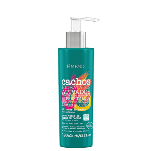 Ativador de cachos para todos os tipos de cabelos cacheados. Ativador de Cachos Amend Cachos garante definição e hidratação intensa. Elimina o frizz e nutre para marcas as curvas naturais.