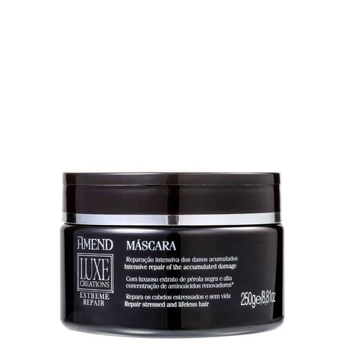 Máscara de tratamento para cabelos estressados e sem vida. Amend Luxe Creations Extreme Repair Máscara nutre, reforça a fibra capilar e repara os danos. Elimina os sinais de envelhecimento dos fios, como a fraqueza, opacidade e desidratação, para revelar um cabelo mais saudável e bonito.