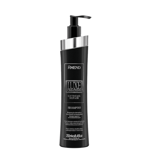 Shampoo para cabelos secos e ressecados. Amend Luxe Creations Extreme Repair ajuda na recuperação dos fios para que fiquem hidratados, resistentes e brilhantes. Sua fórmula age nos sinais de envelhecimento capilar, como a fraqueza, opacidade e desidratação, para revelar um cabelo mais saudável e bonito.