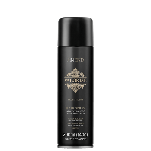 Amend Valorize Hair Spray Ultra Forte traz silicones que protegem os fios da umidade. Seu jato seco não deixa resíduos no cabelo.