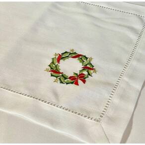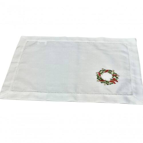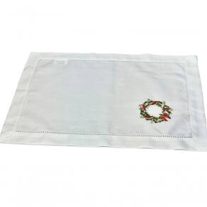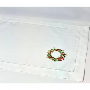 - 1 - Americano De Linho Natal Branco Bordado Com Guirlandinha 36x50 Cm