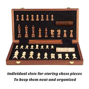 Descrição AMEROUS 2 em 1 Conjunto de Damas de Xadrez de Madeira - Conjunto de xadrez esculpido à mão magnética de 15 polegadas com tabuleiro dobrável e 2 rainhas extras para crianças e adultos por que nos escolher? 2 em 1 jogo de tabuleiro para xadrez e xadrez jogo Feito de madeira premium com textura lisa para fornecer um toque de qualidade 15 polegadas grande tabuleiro para jogar por diversão e conforto Design dobrável torna portátil para transportar especialmente para viajar Incluindo 2 rainhas extras como um bônus Peças de xadrez magnéticas feitas para melhor estabilidade sem se preocupar com a queda de peças ou falta a bordo Requintadamente madeira esculpida à mão para garantir um visual elegante - como uma peça de arte Escolha perfeita para crianças, amigos, enxadristas em eventos especiais ou feriados Serviço de reembolso de 365 dias para seguro de qualidade Especificação Item: Xadrez de Madeira Versáculas De Fato: Madeira Board Tamanho: 15 x 15 polegadas King Height: 3 polegadas Pacote Inclui 1 x Magnetic Chess Checkers Set (com 2 rainhas extras)