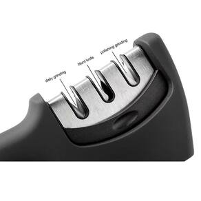 Com um design moderno e ergonômico, este afiador é fácil de manusear e seguro para usar. Possui três ranhuras de afiação, permitindo que você afie diferentes tipos de lâminas, desde facas de cozinha até tesouras. Além disso, seu material resistente garante uma longa vida útil ao produto.