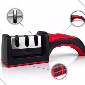 Chega de facas sem corte nosso amolador é a resposta rápida e eficaz para restaurar a afiação de suas lâminas em questão de segundos. Projetado com cabo anatomico emborrachado para garantir a segurança e eficiencia, este dispositivo compacto é perfeito para qualquer pessoa, desde chefs experientes até entusiastas da culinária.