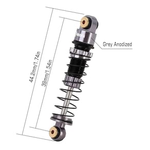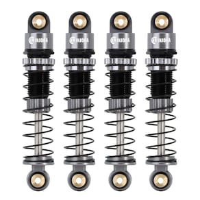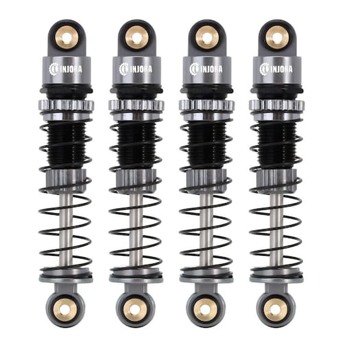 Observação: Use óleo de choque (não incluído) para adicionar apenas óleo suficiente para um revestimento pesado. Não encha totalmente o corpo do choque. Especificações: Material: Alumínio Cor: preto e vermelho / cinza / azul Comprimento total: 44,2 mm/1,74 pol. Comprimento olho no olho: 39 mm/1,54 pol. Comprimento comprimido: 27,5 mm/1,08 pol (sem óleo) Viagem (sem óleo): 10,2 mm/0,4 pol. Adequado para: Axial SCX24, FMS FCX24M ou outro carro mini/micro rastreador Conteúdo da embalagem: Amortecedores de alumínio ajustáveis de 4 x 39 mm - Estes amortecedores de 39 mm são usinados a partir de alumínio e apresentam corpos roscados para ajustes rápidos de pré-carga. - Internamente, eles usam óleo de choque (não incluído) em vez do amortecimento de fricção típico e empregam vedações de bexiga para amortecimento de rebote consistente. Use óleo de choque para adicionar apenas óleo suficiente para um revestimento pesado. Não encha totalmente o corpo do choque. - Três taxas de mola estão incluídas, permitindo que você ajuste esses amortecedores no seu chassi. - Os amortecedores de viagem longos rosqueados de alumínio INJORA são uma ótima opção para adicionar viagens ao seu Axial SCX24 ou FMS FCX24M. - Comprimento comprimido olho a olho é de 27,5 mm/1,08 pol (sem óleo), viagem (sem óleo) é de 10,2 mm/0,4 pol.