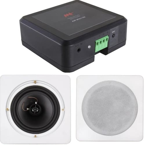 Kit composto de amplificador bluetooth v5. 0 aat bta-1 g2 st entrada auxiliar + 2 caixas donner dr650 quadrada cor branca amplificador bluetooth v5. 0 aat bta-1 g2 st entrada auxiliar descrição solução moderna e eficiente, o amplificador bluetooth para som ambiente aat bta-1 g2 é perfeito para a reprodução de música sem fio em pequenos cômodos residenciais ou escritórios, consultórios e lojas. Na nova versão g2, o produto ganhou eletrônica de segunda geração e entrada auxiliar, que permite o uso em conjunto com televisores, adicionando as solution boxes aat hdmi arc/earc e dac box. E o melhor: a seleção de entrada não depende de controle remoto. O produto pode ficar posicionado em qualquer lugar de seu ambiente, ou mesmo acima do teto de gesso ou drywall. Para isso, a aat buscou a mais moderna tecnologia de transmissão digital sem fio, atendendo às necessidades de qualquer consumidor, até os mais exigentes, com uma qualidade de áudio surpreendente. Características / especificações o aat bta-1 g2 é um amplificador digital estéreo classe d com de bluetooth v5. 0, entrada auxiliar p2 ativa quando o bluetooth está desconectado e fonte chaveada full-range automática de 90 a 255v. O produto pode ficar oculto no forro de gesso ou à mostra, em qualquer lugar do ambiente. No gabinete, não há teclas de comando: apenas o led indicando se o aparelho está ligado e o bluetooth conectado, a entrada auxiliar p2, saídas para alto-falantes e o botão de reset. O ajuste de volume e a seleção das músicas a serem reproduzidas são feitos pelo próprio celular via bluetooth ou pelo televisor conectado à entrada auxiliar. A potência é de 30w rms contínuos ou 60w rms máximos em 4 ohms e 20w rms contínuos ou 40w rms máximos em 8 ohms. E tudo isso com a qualidade que só a aat consegue entregar. Especificações potência rms contínua de acordo com a norma nbr- iec 60268-3 : 8 ohms: 20w rms / 4 ohms: 30w rms potência rms máxima total : 8 ohms: 40w rms / 4 ohms: 60w rms impedância mínima : 4 ohms pode-se conectar até 4 caixas configuração de nome e senha : sim, em fábrica sensibilidade : 81db m0. 1% ber distância de recepção máxima com visão direta : 10m dimensões l x p x a : 106 x 101 x 40mm peso sem embalagem : 0,22 kg itens inclusos na embalagem : aat bta-1 g2 / cabo de energia / 1 qr code para acessar manual do usuário - caixa gesso donner dr650 cor branca quadrada 60w características