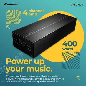Pioneer Amplificador de carro GM-D1004 4 canais classe FD Bridgeable – Potência máxima de 400 W, 45 W RMS - Qualidade de som excepcional: este amplificador Pioneer Class FD oferece áudio mais limpo, graves mais profundos e distorção reduzida. Seu design eficiente melhora a clareza, a dinâmica e sua experiência geral de audição no carro. - Configuração de alto-falante flexível: Potência 4, 3 ou 2 alto-falantes com 4x 45W RMS a 4 ohms, 90W RMS quando conectado, ou até 100W x 4 MAX a 4 ohms (1% THD). Este amplificador oferece opções versáteis e desempenho poderoso para qualquer configuração de áudio. - Controle de frequência preciso: os filtros passa-alta (HPF) e passa-baixa (LPF) do amplificador otimizam o desempenho do alto-falante, dividindo frequências (crossover de 80 Hz) para garantir transições suaves e áudio ajustado para atender às suas preferências de audição. - Claridade de som aprimorada: a tecnologia TVC (Total Vibration Control) da Pioneer aumenta a rigidez do amplificador e otimiza o posicionamento do componente e a dissipação de calor, reduzindo as vibrações que podem distorcer o áudio para um som mais claro e preciso. - Instalação fácil e eficiente: O amplificador tem baixo consumo de corrente (1,7 amperes) e não requer fiação do motor, reduzindo o tempo de configuração. Ligue a partir do seu sistema de navegação ou áudio usando os cabos RCA e de entrada de alto-falante incluídos para instalação rápida e fácil. - Design compacto: o amplificador GM-D1004 da Pioneer oferece instalação adaptável em qualquer veículo com seu tamanho compacto, garantindo integração perfeita em espaços apertados sem comprometer o desempenho ou a funcionalidade.