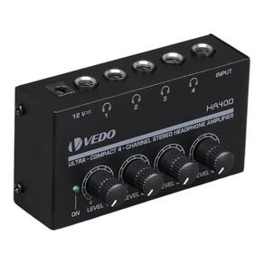 Amplificador De Fone Vedo HA400 4 Canais Powerplay 110V/120V Descrição O Amplificador de Fones de Ouvido HA400 é a solução perfeita para quem busca distribuir áudio de alta qualidade para até quatro fones simultaneamente, seja em estúdios ou em ensaios . Com estrutura estéreo ultra-compacta e desempenho estável, ele permite que cada músico ou profissional tenha controle de volume individual em seu canal, mantendo clareza sonora mesmo em volumes elevados. Seu circuito com amplificador operacional 4580 garante baixíssimo ruído, ideal para aplicações exigentes em gravações ou monitoramento. Compatível com conexões P10 estéreo 6,3 mm , o HA400 oferece uma entrada principal e quatro saídas independentes com impedâncias otimizadas para . O equipamento acompanha fonte de alimentação 12V/1.5A com proteção contra sobretensão e superaquecimento, assegurando segurança e confiabilidade durante longas sessões. Robusto e fácil de operar, é ideal para quem precisa de um sistema de retorno prático e eficiente para diversos fones de ouvido ao mesmo tempo. Especificações Técnicas - Alimentação: Elétrico com fio Fonte DC 12V/1.5A inclusa - Tipo: Amplificador estéreo de fones de ouvido - Número de canais: 1 entrada e 4 saídas - Conectores: 1 entrada estéreo 6,3 mm P10 e 4 saídas estéreo 6,3 mm P10 - Impedância de entrada: 100 Ohm - Impedância de saída: 80 Ohm - Controle de volume independente por canal - Chip de áudio: Amplificador operacional 4580 de baixo ruído Dimensões e Peso - Comprimento: 10,5 cm - Largura: 5,7 cm - Altura: 3 cm - Peso: 280 g Itens Inclusos - 1 amplificador de fones de ouvido HA400 - 1 adaptador de energia 12V/1.5A - 1 manual do usuário : 3 meses de pelo fabricante. Origem: China Imagens meramente ilustrativas, podendo haver variação de cor Marca: Não Informado Ean: 787996008257