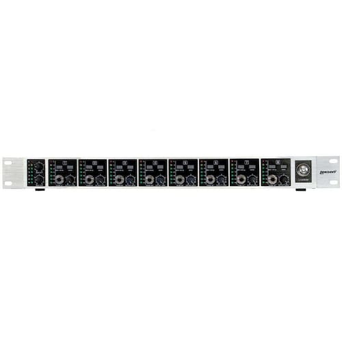 Amplificador de Fones de Ouvido Lexsen LHA8000 de 8 Canais O LHA8000 da Lexsen é um amplificador de fones de ouvido com 8 canais, que possui funções superiores de desempenho, roteamento e mixagem para acomodar até mesmo os ouvidos mais exigentes. Uma entrada auxiliar estéreo em cada canal permite que cada artista equilibre o sinal de entrada direta.O LHA8000 oferece 8 amplificadores de alta potência que podem levar cargas de até 8 Ohms. Cada amplificador possui seu próprio medidor de saída com 7 LEDs, chaves mono esquerda e direita.No painel traseiro você encontrará uma saída adicional TRS por canal. Isso significa que até 16 pares de fones de ouvido podem ouvir 8 mixagens separadas de uma só vez. O painel traseiro também possui entradas e saídas P10 estéreo para que você possa conecte várias unidades LHA8000 para uma capacidade de audição ainda maior. Especificações Técnicas: - Marca: Lexsen;- Modelo: LHA8000;- Sistema amplificador de fones profissional, multiusos para aplicações de estúdio e ao vivo;- Maior qualidade sonora com praticamente todos os tipos de fones de ouvido, mesmo com volume máximo;- 8 seções independentes de amplificador de alta potência fornecem até oito mixagens com controles individuais de volume;- Cada entrada / seção auxiliar pode ser ajustada separadamente para mixagem;- Full Range Bivolt .