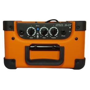 O amplificador Steel 20GT possui 15W RMS, alto-falante de 6 polegada, canal limpo e canal distorção e saída para fone de ouvido.