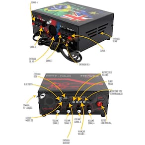 DESCRIÇÃO: Agora você pode curtir sua própria música com uma super potência e o menor custo do mercado. O Amplificador Fifty Four está mais potente. Agora com Bluetooth, ouça suas músicas e escute suas ligações direto do amplificador. Além disso, possui entrada USB, entrada para cartão de memória e entrada RCA para que você desfrute suas músicas favoritas e Rádio FM para você poder ouvir sua rádio preferida. Um excelente amplificador de mesa que pode ser utilizado para tocar seu som onde você estiver.