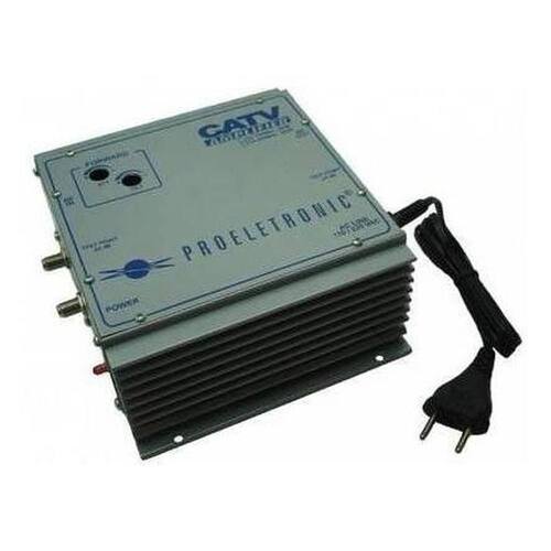 Amplificador De potência 750Mhz 50Db Bivolt Pqap-7500G2 Desenvolvido para as operadoras de do brasil, o amplificador de potência da proeletronic é uma ótima opção para sistemas coletivos de televisão. Bivolt pqap-7500 pronto para tv digital; aceito e indicado pelas principais operadoras de tv paga do brasil; caixa metálica em alumínio extrudado que dissipa calor; pintura eletrostática; proteção elétrica através de fusível; filtro interno; saída de teste; ótima resposta em frequência; controle de intensidade do nível de saída; controle de inclinação Desenvolvido para as operadoras de do brasil, o amplificador de potência da proeletronic é uma ótima opção para sistemas coletivos de televisão. com exclusivo sistema de dissipação de calor através de chassis extrudado de alumínio, o amplificador possui ótima confiabilidade, durabilidade, faixa de operação até 750 mhz e ganho de 50db. Utiliza módulos híbridos push-pull que garantem baixa intermodulação e ótimo desempenho para os sinais digitais. Aplicação Amplificador indoor é utilizado em sistemas coletivos de prédios, condomínios verticais e horizontais. Deve ser utilizado para amplificar as faixas de tv digital, uhf e catv e em sistemas de tv aberta e cabo. O amplificador de potência é indicado onde é necessário elevar a potência do sinal de tv para posteriormente distribuir para diversos pontos. Especificações Frequência: 54~750 Mhz Ganho: 50 Db Tensão De Entrada: 110/220 Vac Impedância: 75 Ohms Conectores: Tipo F Fêmea Dimensões: 160 X 190 X 75 Mm Peso: 1797 G Homologação Anatel: 060792000160 Marca: Não Informado